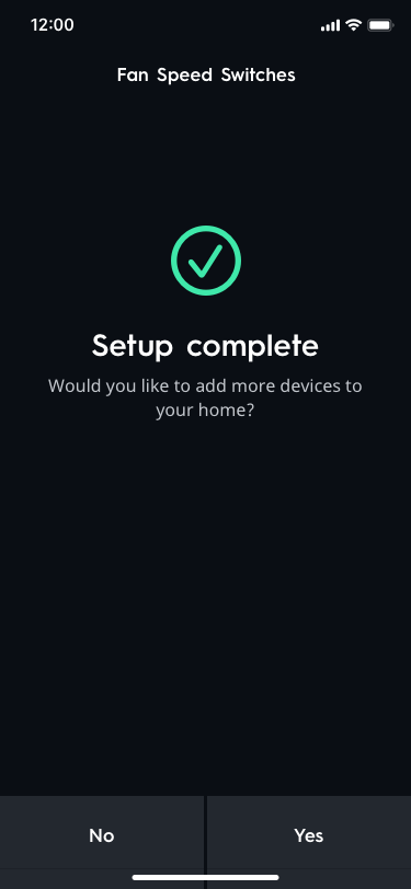 - Your device is now added to the home. Select Done. The app will check for updates for the newly added Ceiling Fan Smart switch. Once that is finished, your device setup is complete.