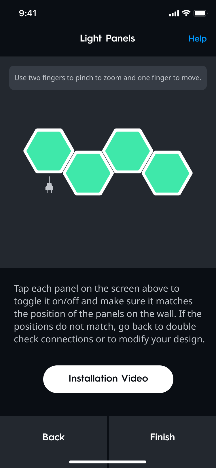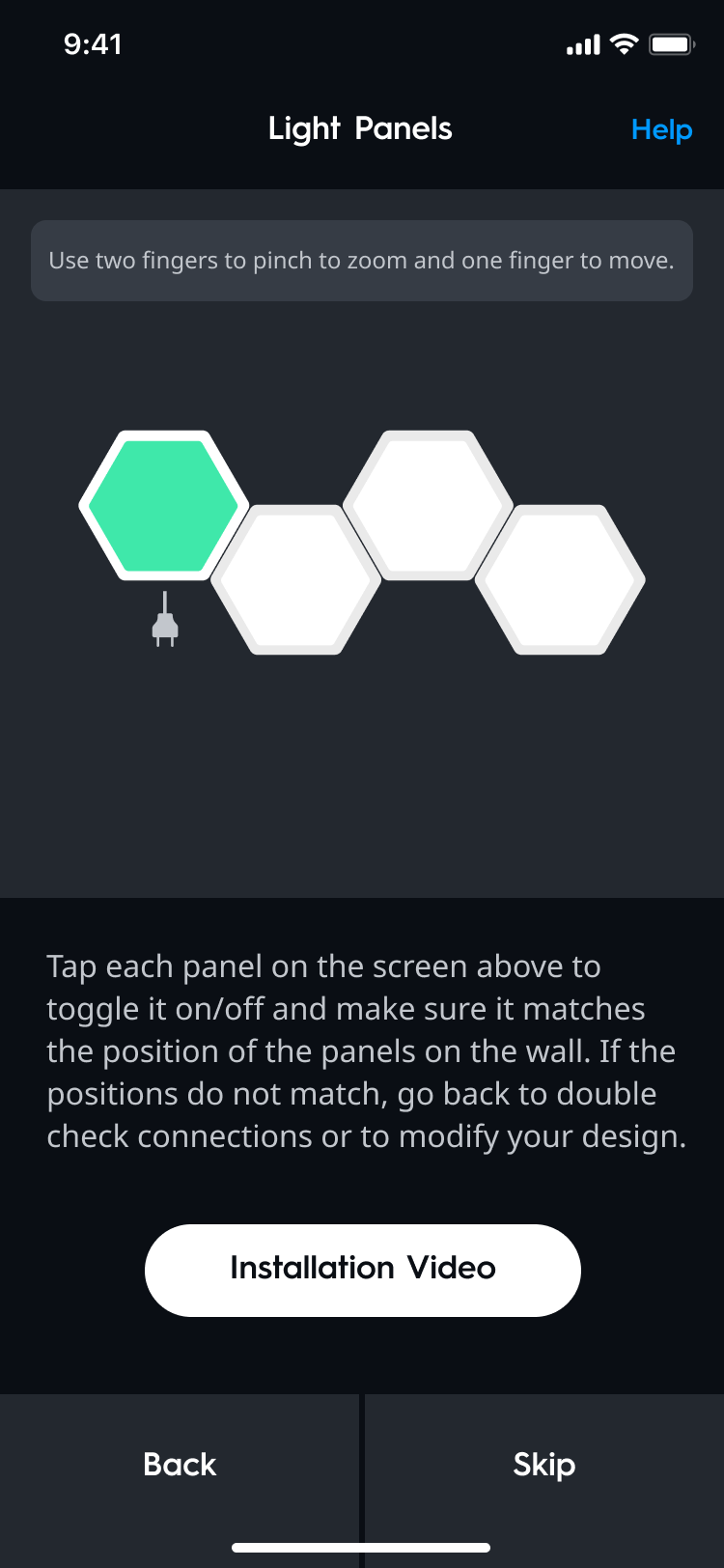 - Once your device has been added to the home, you will be prompted to create a design for your Hexagon Panels. Continue to the next section for instructions.