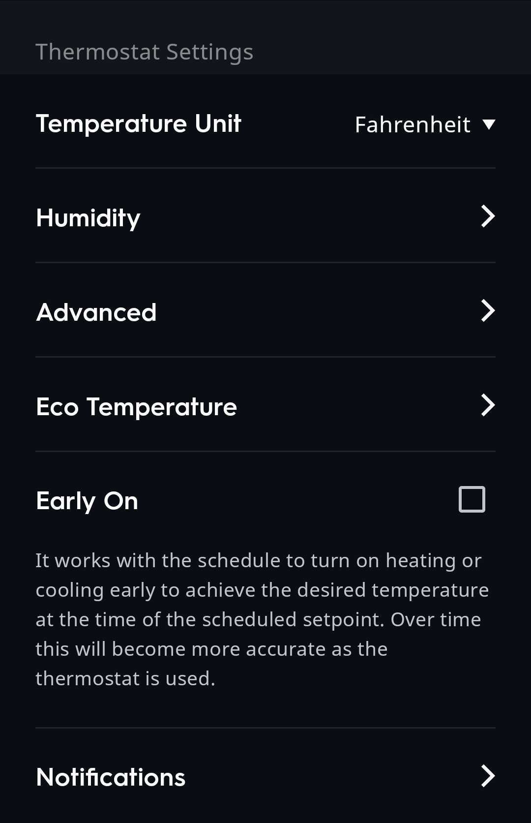 - Firmware Version: Shows what version of firmware your Smart Thermostat is currently on.