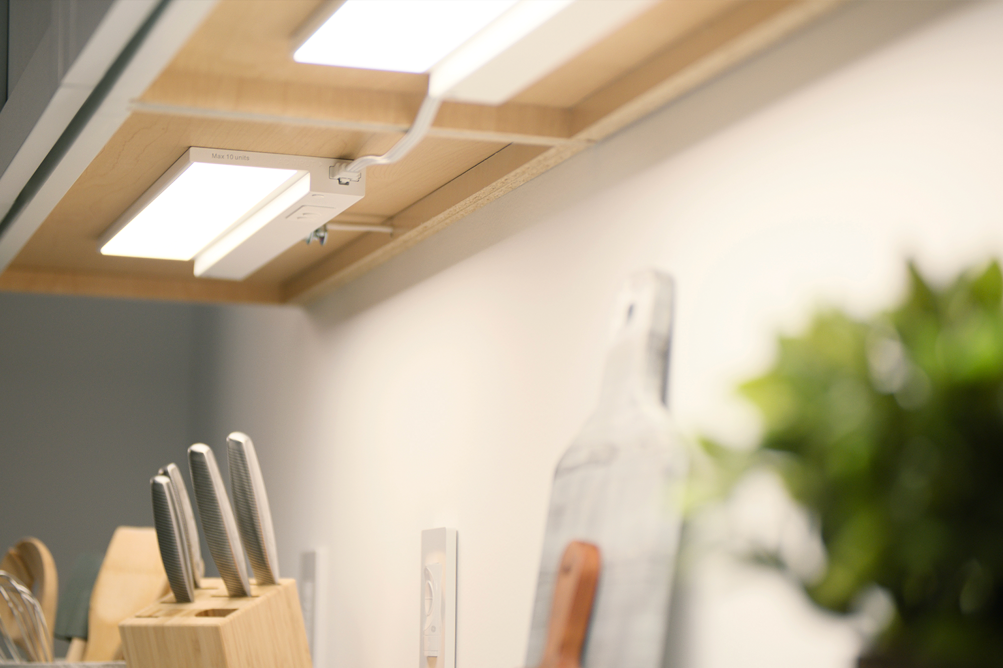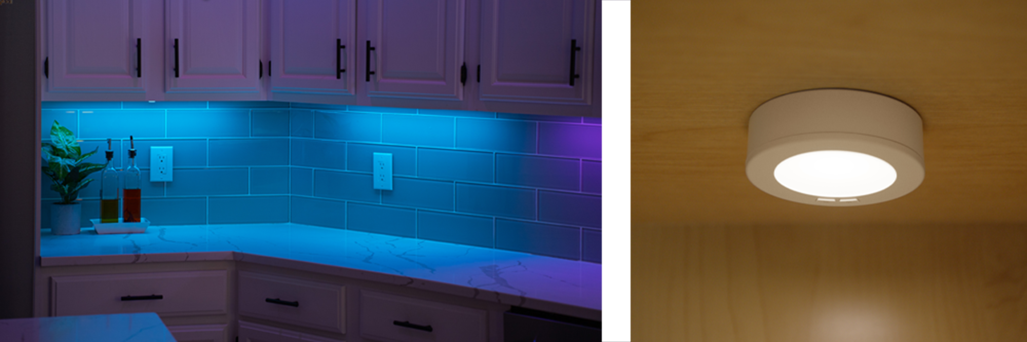 Sleek and ultra-thin Undercabinet Lights illuminate countertops with pools of vibrant colors & pure, clean light that is uniform - eliminating hotspots. Available in 12in, 18in, and 24in, and a puck version. These easy to install fixtures combine high quality of light with the convenience of smart home control.