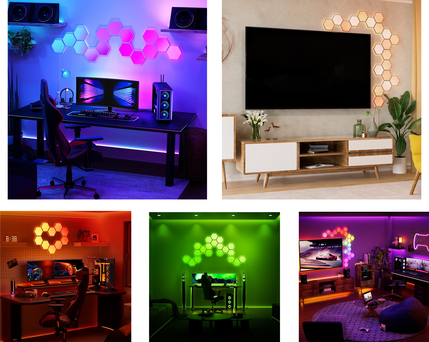 Introducing our latest addition to the Dynamic Effects family! With sleek design and customizable options, Hexagon Panels bring a new level of personalization to your living space. Easily control and create custom light/music shows within the app, and seamlessly integrate our favorite colors, shows, and layouts on your panels.